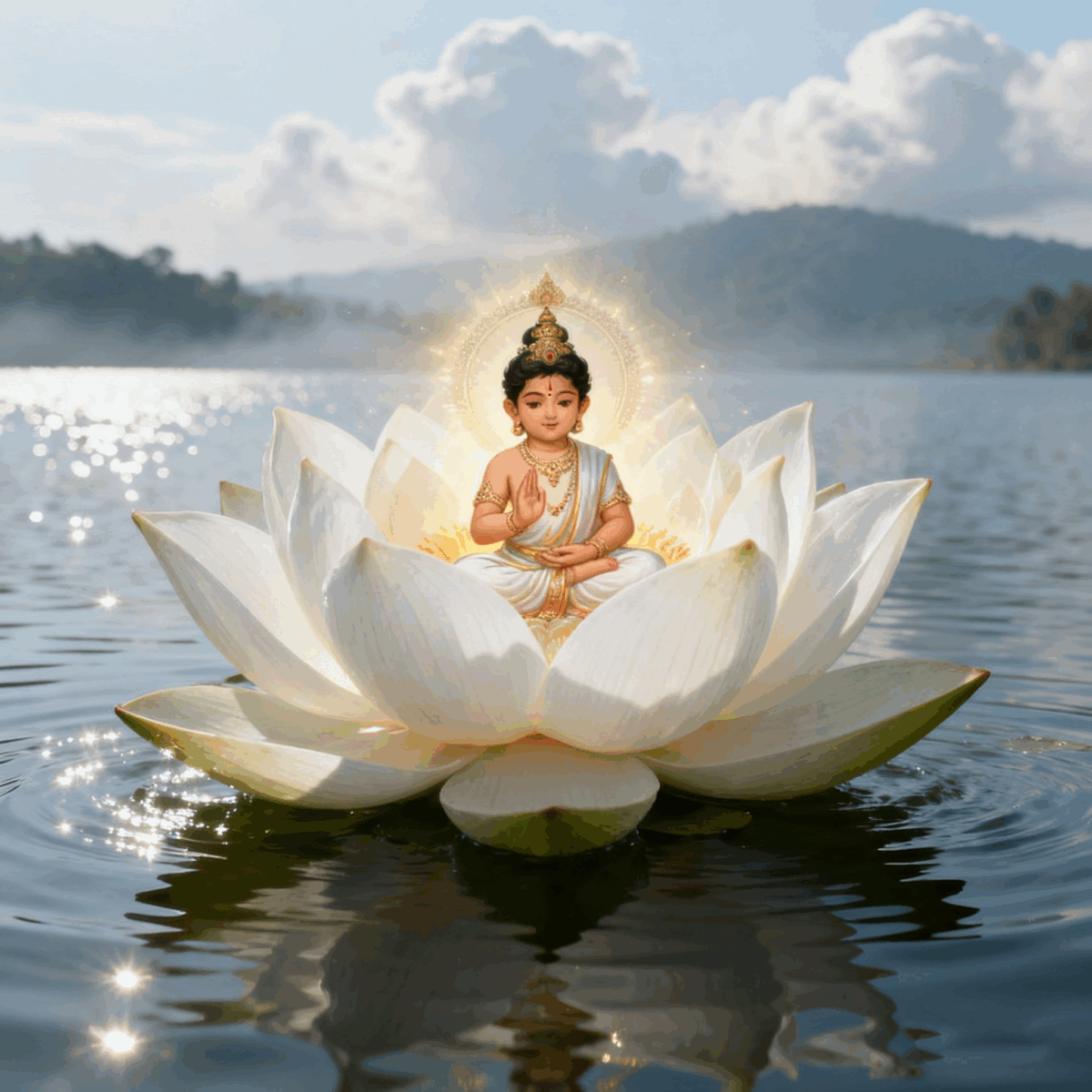 The most iconic legend of Guru Padmasambhava is his miraculous birth from a lotus. According to tradition, he appeared as an eight-year-old child on a blooming lotus flower in Oddyāna Lake (also known as Uḍḍiyāna, in present-day northwestern Pakistan, bordering Afghanistan) in India. He proclaimed, “My father is Samantabhadra (a symbol of Samantabhadra’s wisdom), and my mother is Samantabhadrī. I am Padmāsambhava, born of a lotus.”