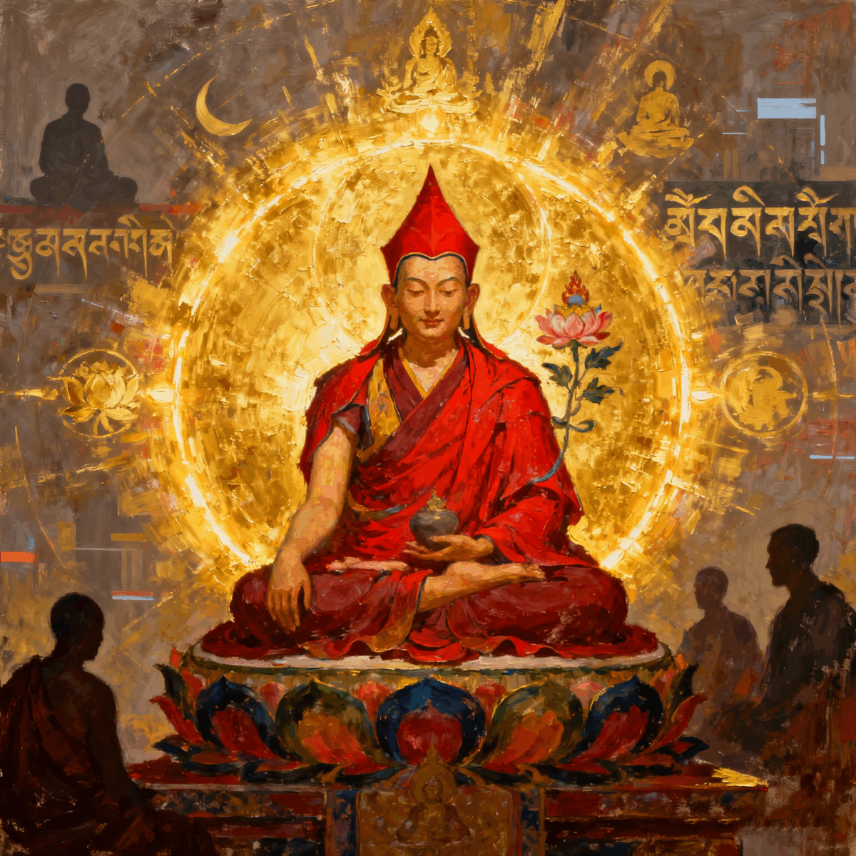 He symbolizes the crucial bridge that successfully transitioned Buddhism from India to Tibet, and is therefore revered as the “Founder of Tibetan Buddhism.”