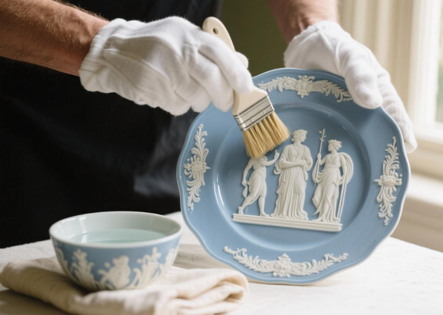Cleaning Carefully: Wedgwood stoneware is susceptible to damage from impacts, especially the raised relief areas. Simply use a soft, dry cloth or brush to gently remove dust. Never use any chemical cleaners or soak the piece.
