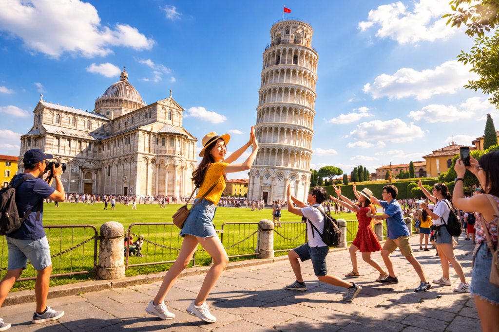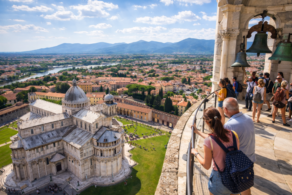 As one of Italy’s most celebrated landmarks, the Leaning Tower of Pisa attracts millions of visitors annually. Tourists often pose in playful “holding up the tower” stances, a tradition that has become part of Pisa’s cultural identity. Climbing the spiral staircase to the top offers sweeping views of the city and the surrounding countryside, where medieval heritage blends seamlessly with modern life.
